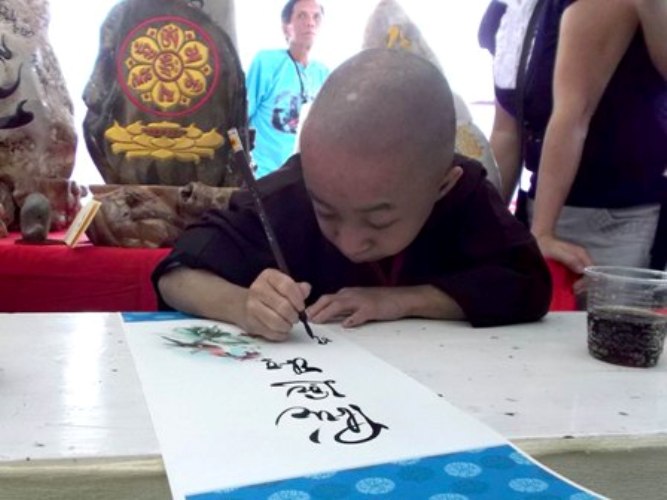đi ấy, có thầy Thích Giác Thiện, là một nghệ sĩ thư pháp cùng song hành. “Cô